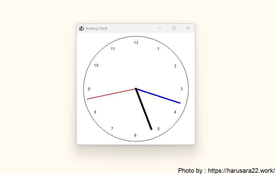 JavaのSwingライブラリを使用してアナログ時計を描画しました。