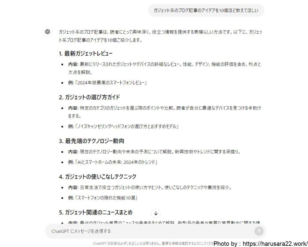 Q.『ガジェット系のブログ記事のアイデアを10個ほど教えてほしい』