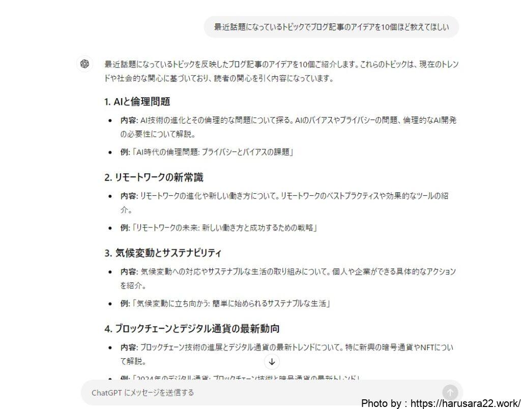 ChatGPTでまとめてテーマを提案してもらうことが出来ます。