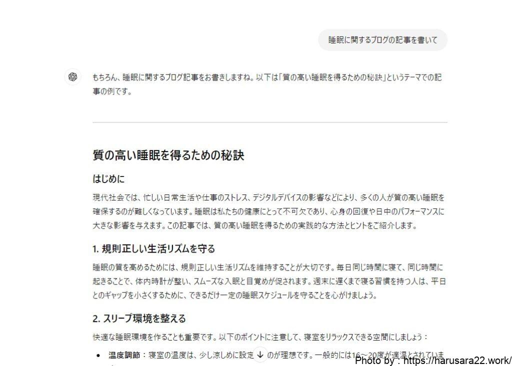 『睡眠に関するブログの記事を書いて』と指示を出し