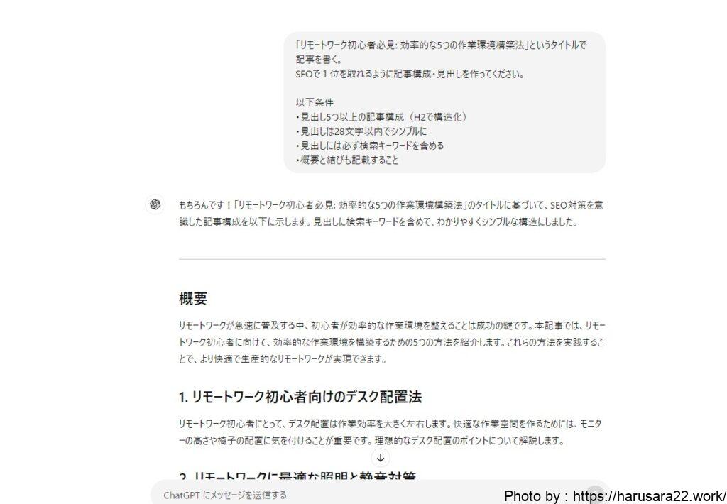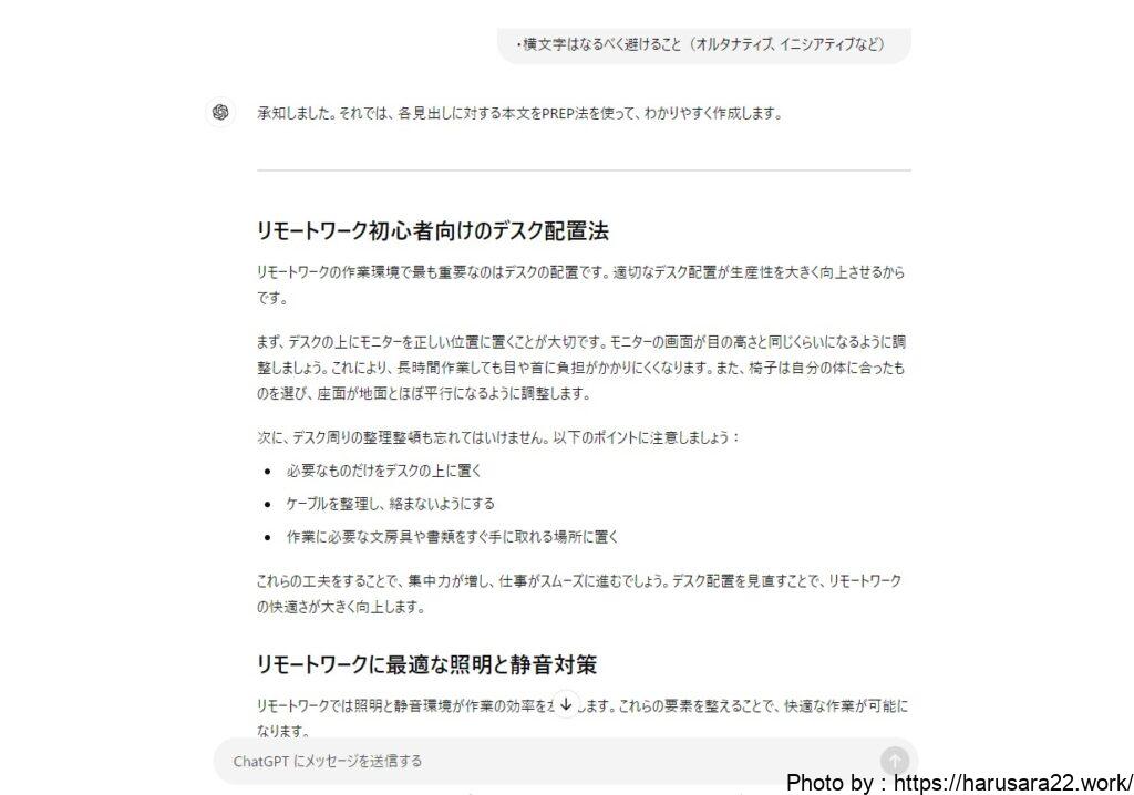 そのため、ChatGPTに作成してもらった本文を