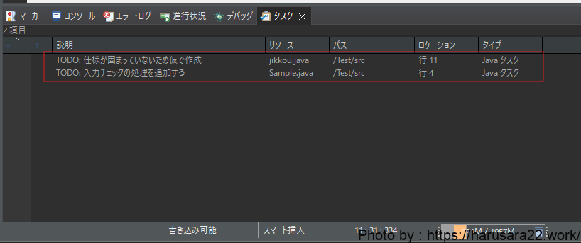 これにより「未処理タスクの一覧」をEclipse上で管理できるようになります。
