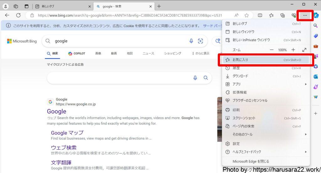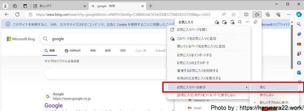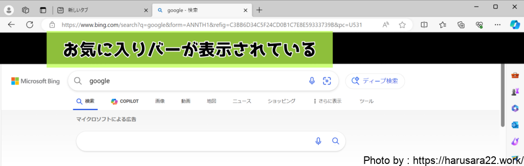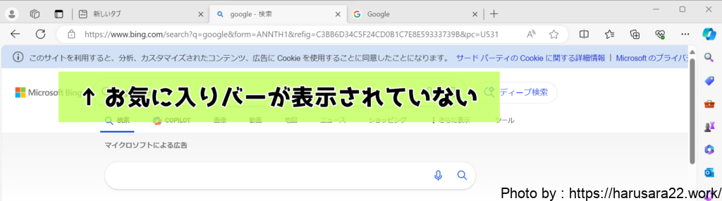 ※黒塗りしている個所にお気に入りバーが表示されています。