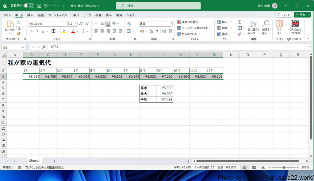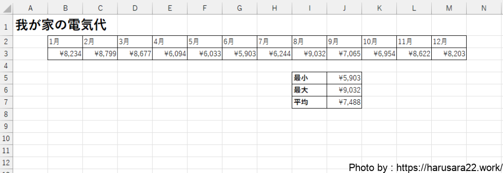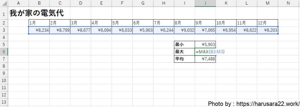 Excelで関数を使用して数値の中の最大・最小・平均を算出するまとめ
