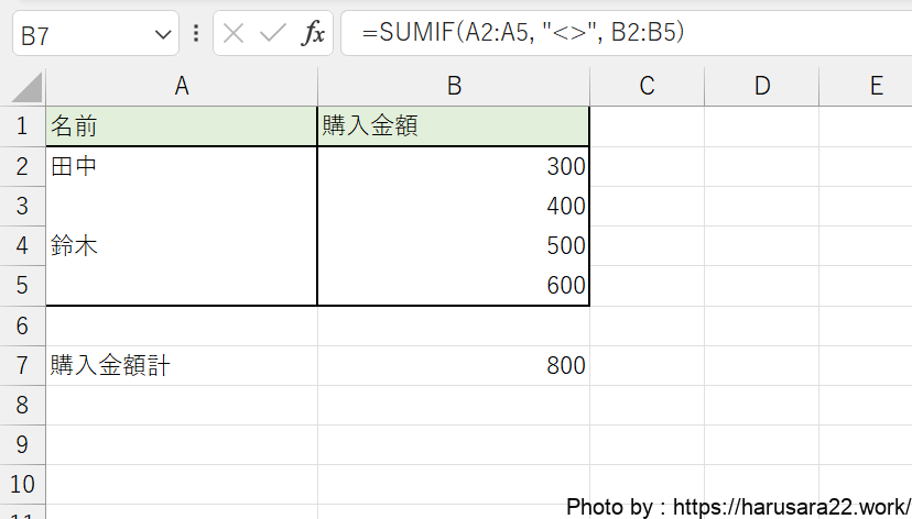 この表で、顧客名が入力されている行だけの購入金額を合計したい場合、