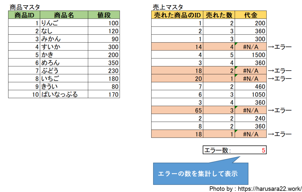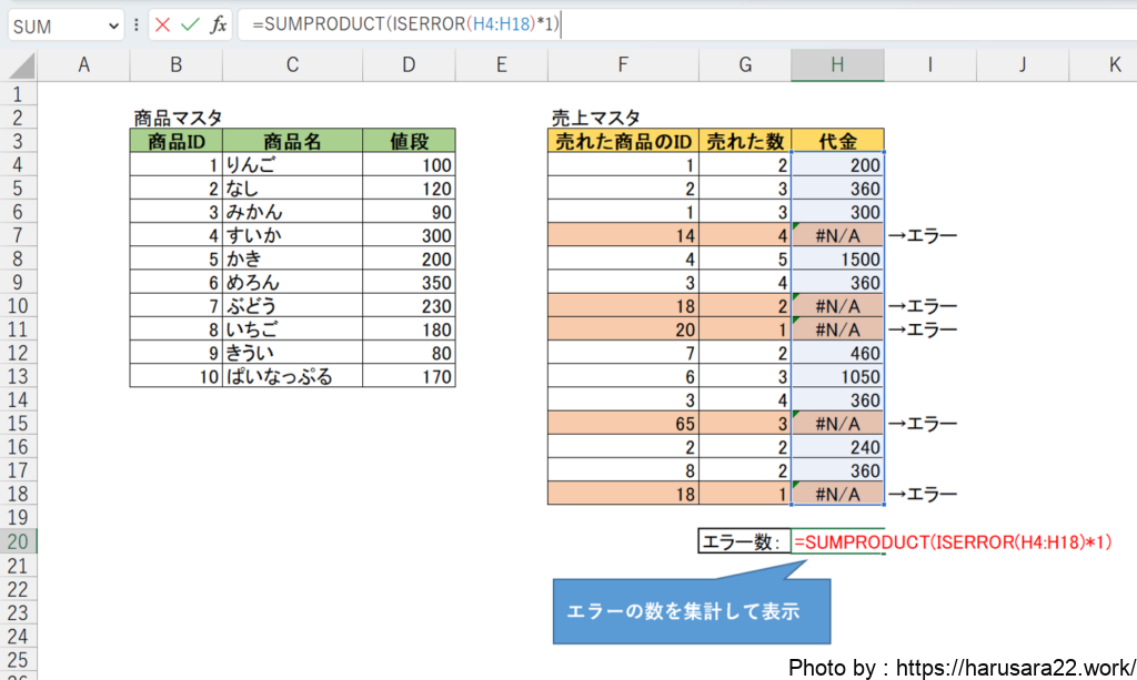 Excelのエラー件数を数える方法