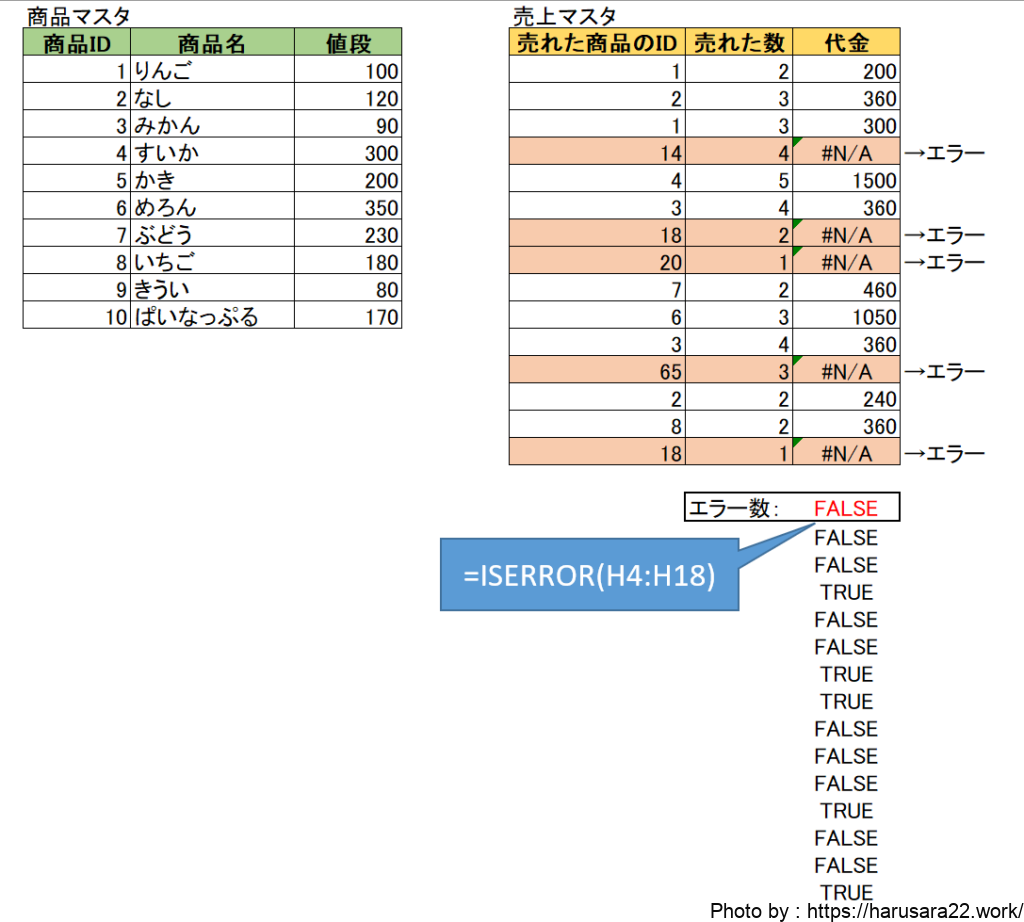 今回の様にISERROR関数で