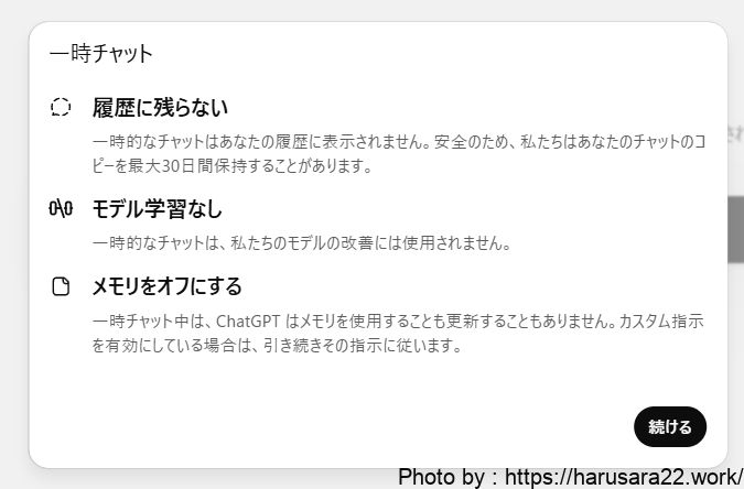 例えば、ChatGPTの「Temporary Chat」機能や、