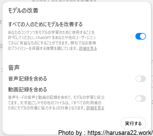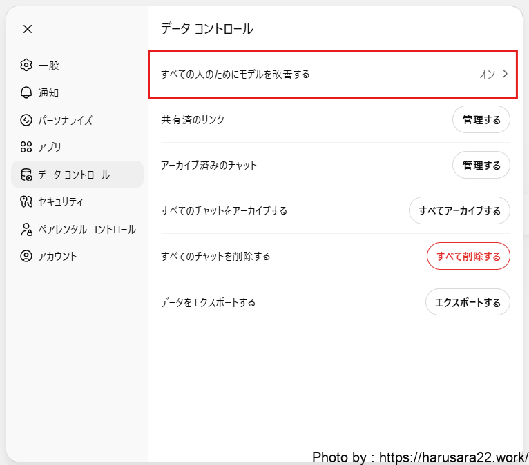 ChatGPTでモデルの改善を無効化する方法
