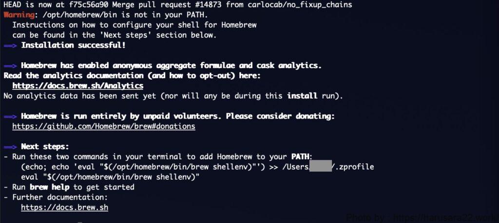 しかし、NextStepsとして「次の 2 つのコマンドを実行して、Homebrew を PATH に追加してね」と言われています。