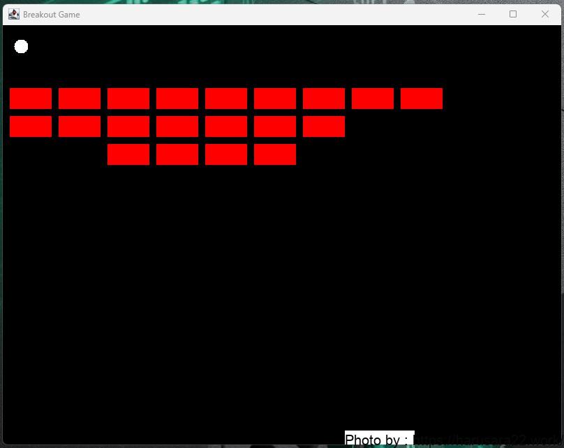 (パドルの位置、ボールの位置と速度、ブロックのリストなど)を宣言します。