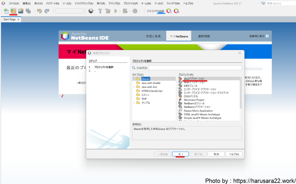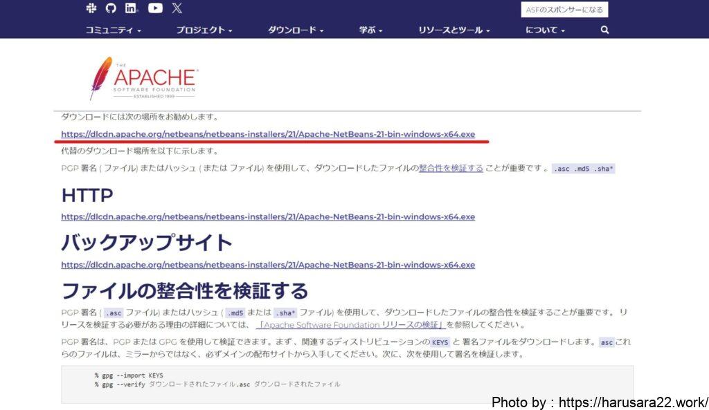 『Apache-NetBeans-21-bin-windows-x64.exe』をクリック。