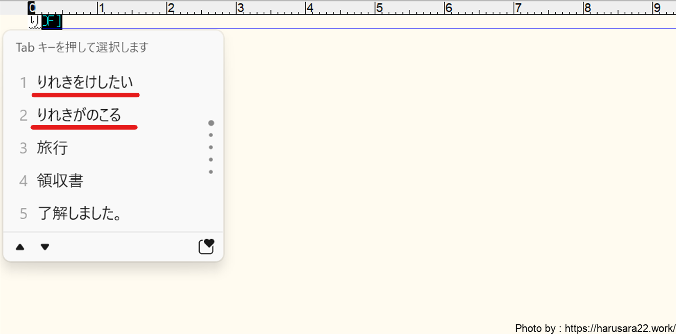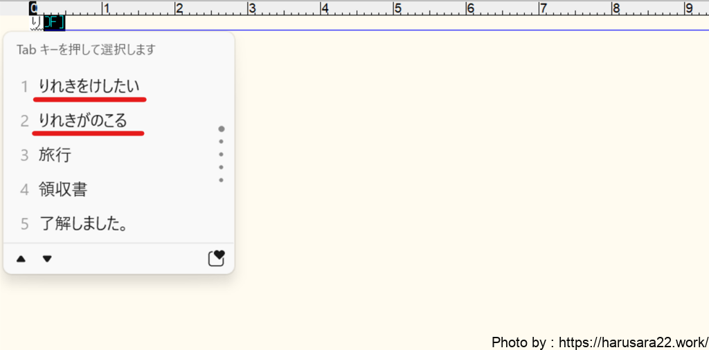 「り」を入力すると