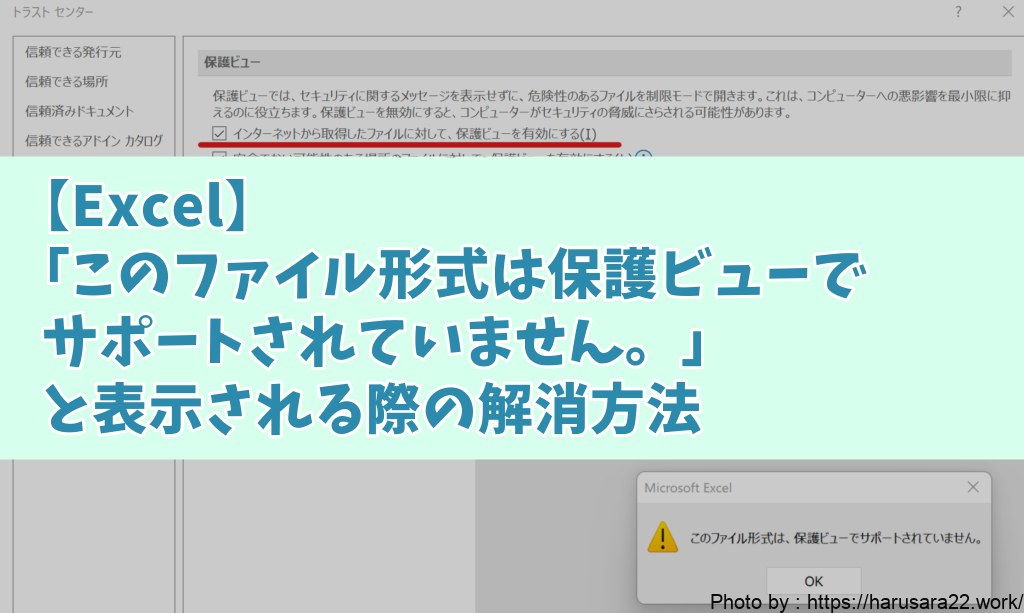 【Excel】「このファイル形式は、保護ビューでサポートされていません。」の解消方法