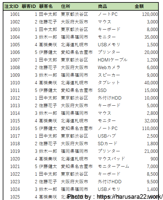 1. データの抽出(SELECT) 特定の顧客の注文情報を取得する例