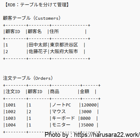 RDBは複数のテーブルを結合(JOIN)してデータを取得することが得意ですが、