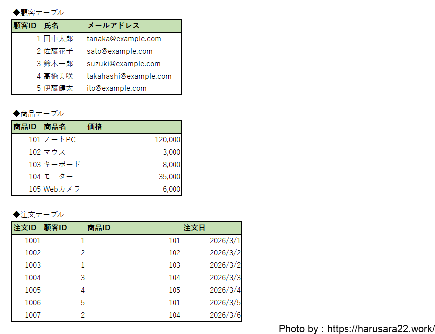 RDBは複数のテーブルを結合(JOIN)してデータを取得することが得意ですが、