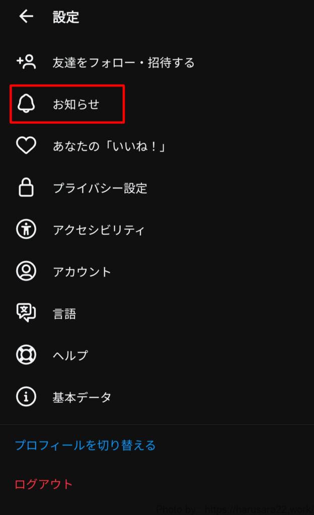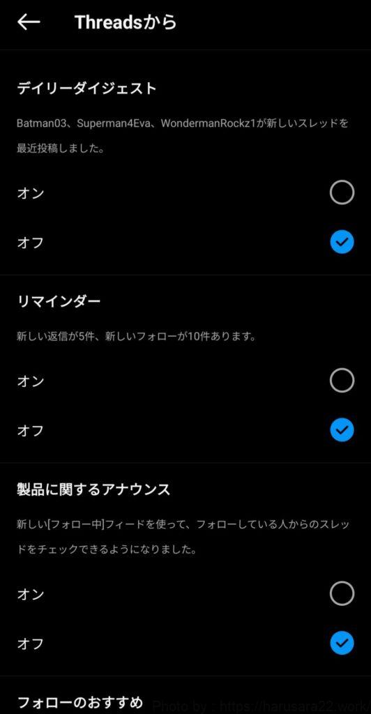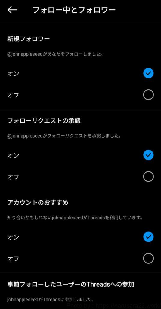 『フォロー中とフォロワー』から設定できる通知受け取り設定一覧