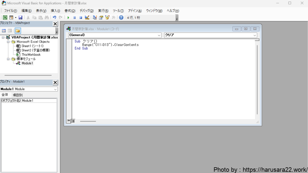 ちなみにClearContentsメソッドでは数式、値の消去を行いますが