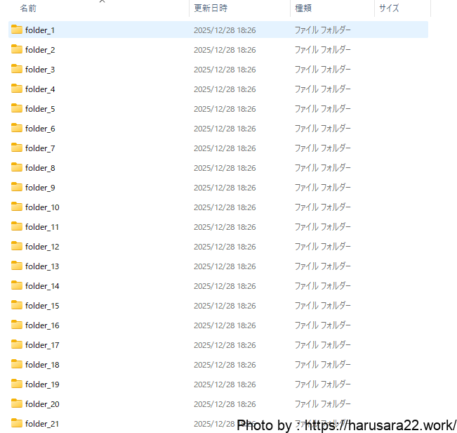 これにより、.batファイルをクリックするだけでフォルダの作成が可能