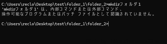 例えば、フォルダを作る命令なら「mkdir フォルダ名」のように記述します。