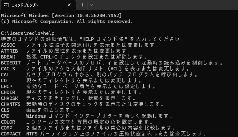 まずは「dir」や「cls」といった簡単なものから使い始め、